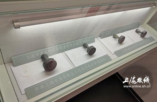 进入展馆后你就能看到一堵巨大的电视墙,这里播放着浦东开发开放的纪录片,往里走便开启了本次的游览之旅。展馆的一层除了记录浦东开发开放前10年的奋斗历程,还将当时的办公环境进行了复原,一张张老式桌椅一件件历史资料,让人们仿佛回到了那个奋勇拼搏的年代。除此之外还有诸如老式电话机、老式热水瓶、老式钟表公文包等设备和物品,非常的据有老上海气息。而当年管委会的公章复制品也被安置于此。