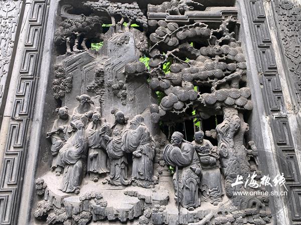 书隐楼最为珍贵的是精美的砖木雕刻艺术。花厅旁有花墙洞门,门上有砖雕“凤穿牡丹”,门框边刻松鼠葡萄。墙上有漏窗,窗上图案中心部分为骑马逐鹿,另有二仙游山,都是立体镂雕。书隐楼前的仪门头,有“周文王访贤”长卷砖,门头上题有“古训是式”匾额,匾额两旁“兜肚”刻有“穆天子朝观西王母”、“王母骑青鸾翱翔云间”、“老子骑青牛出函谷关”的砖雕,形象生动,神态逼真。楼前东西两侧,各竖一面砖雕屏风墙,东侧为“三星祝寿”图,西侧为“八仙游山”图,周围刻有“福寿”图案。边框,顶部刻有“双龙戏珠”,底部是“鸾凤和鸣”,背面刻有祥云缭绕和在云中飞翔的蝙蝠,堪称砖雕艺术中的珍品。