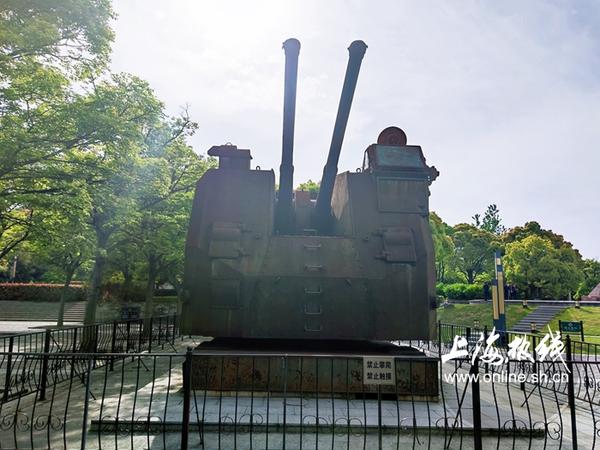 炮台纪念广场由“威严之阵”、“英武之塑”、“下沉展窗”三部分组成,形成广场高台、中轴、斜坡和下沉展点相结合的梯状展示构架。威严之阵:广场制高点矗立着一门清代铁炮(实物),两侧排列着抗战时期与解放战争时期的四门火炮(复制品)。