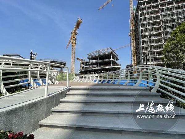 眼前这个通行桥已经重新加固装修过,将东西地块业态打通。行人和车辆横跨“梅陇港”指日可待。