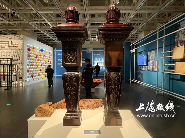 此次展览共有展品86件,历史原物48件,90%以上的展品为第一次对外展出。有跑马总会旧址楼梯栏板花饰(原件)、柚木壁炉、蝴蝶瓦等历史建筑构件,有商船会馆戏台藻井模型、上海总商会旧址模型等微缩模型,还有水刷石、马赛克地坪等典型外墙工艺和室内装饰等。