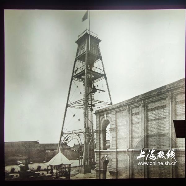 现在依然保留于小南门董家渡路中华路口的火警钟楼, 1910年6月制造落成。高37.5米,是当时城厢内外的最高建筑物。