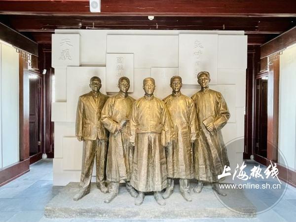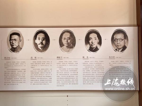 进入序厅,映入眼帘的五位人物雕塑便是南社社团的创始人,在右侧则可以看到每一位创始人的人物介绍和生平。
