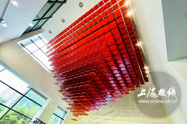 走进钱学森图书馆序厅,红色立体造型"升腾的智慧"如同一朵蓬勃的蘑菇云向天际升腾。4015页手稿,象征着钱学森1955年回国到1966年"两弹结合"试验成功所经历的4015个昼夜。