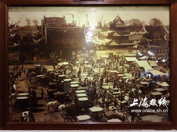 陈列馆入口长廊两边摆放的是记录老上海真实历史的高清摄影作品。令人印象深刻的是那时的龙华寺门口停满了轿子、马车。旁边支起的小棚子下,是从事各种营生的小摊贩们。通过老照片,我们见到了当时人车云集、香火鼎盛的龙华寺以及最为真实平凡的市井生活。
