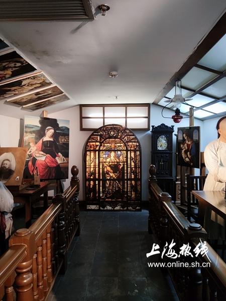 展馆中展出的画馆原型来自于徐家汇的土山湾画馆。1852年创建的土山湾工艺局,画馆聘请西洋画师,传授油画、水彩画等西洋绘画和雕塑技法,是近代中国最早的美术传习所。