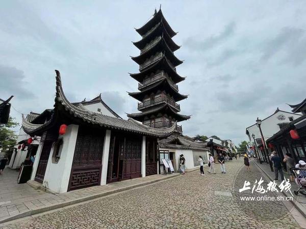 导语:上海这座魔都从对外开放以来就是由中西文化碰撞之后的产物,城市的角落遍布了西洋文化的印记,这也成就了上海作为中国对外开放城市的标杆作用。寺庙和宝塔似乎与这里格格不入,可谁又曾记得,百年前,法华塔矗立的地方也是嘉定老城的中心,塔下为古桥和市廛,河道穿流而过,形成了一塔、二河、三街、四桥融为一体的江南水乡佳景。法华塔,本地人都习惯地称之为金沙塔,在古诗文中,金沙塔和法华塔并称,据说是因为在建塔时塔基下见到了“金沙”的缘故。