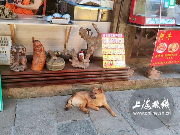 洪西街更加生活化。狗狗正百无聊赖地躺在地上避暑。操着本地口音的叫卖声、闲聊声不绝于耳。