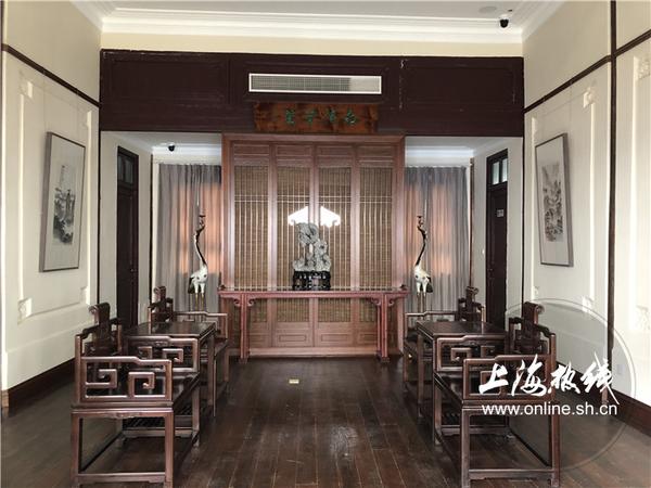 二层中部三间为开放式情景展厅,分别还原当年曹氏客厅、纯庐书斋和桃源水榭。