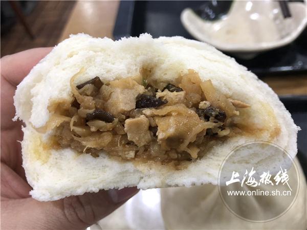 萝卜丝馒头比较特别,是有一丝辣味的内陷,也很实在。一口咬下去,可以吃到萝卜丝、豆腐干、木耳,口感非常丰富。