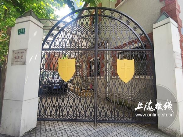 由于大门紧锁,不方便出入,但从马路对面望去,能看到绿色树荫下的红砖楼房。怀恩堂在礼拜时可容纳2000人以上,是上海各基督教会可容纳人数最多的教堂之一。