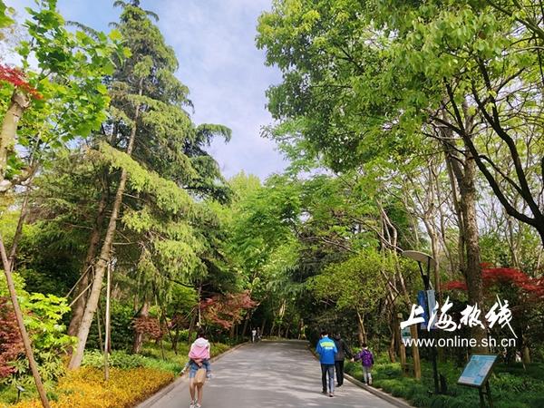 一进公园,就是一眼望不到头的林荫大道。参天大树遮天蔽日,来来往往的游客中有不少都是带娃出行的亲子游。