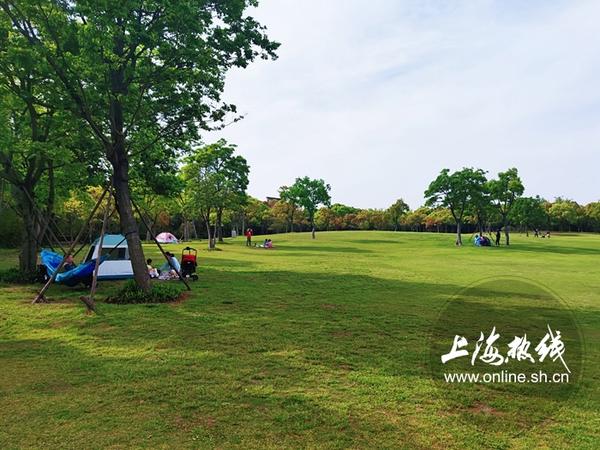 不少露营的游客都选择把帐篷搭在树荫下,既能乘凉,又能在柔软的草坪上嬉戏玩耍,享受春日的美好。