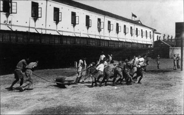 中华职业学校师生在陆家浜荒地上平整土地建造校园