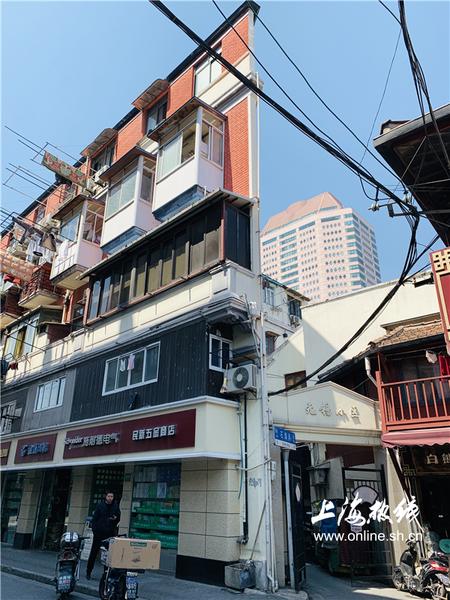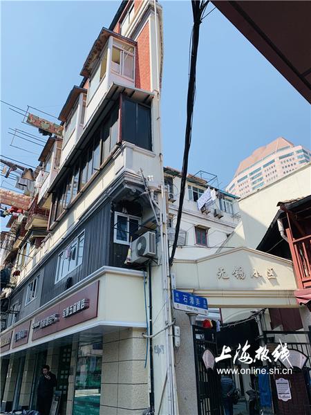 这里是宁波路390号,一个普通的民居,之所以看着像纸片,是因为如果你从从大楼前侧方30°角拍摄,从这个角度看起来,这幢楼真的和纸片差不多,厚度仅和一块砖头一样长。