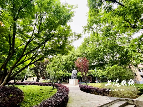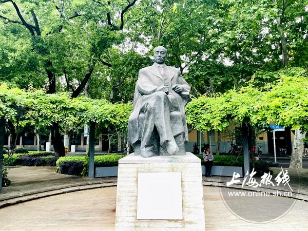 富民路长乐路的交界处,还有一处优雅的街心花园,园内有一尊田汉全身铜像,高4.6米。田汉身披大衣,内着西装,神态潇洒地凝视远方。