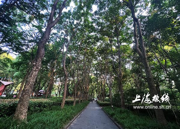 公园内绿化充分考虑了生物多样性,130多种植物郁郁葱葱,夏日到来,来园乘凉散步的人多了不少。