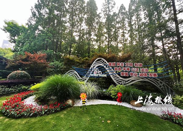 公园园内绿化基本保持原有布局,三株百年香樟,两株在大门西面,一株在园东侧树丛中。公园中央有千余平方米的大草坪,高大的乔木与大块草坪、灌木、花卉组成各色景观。