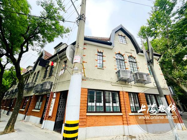 从永嘉路开始往里走,首先映入眼帘的便是安亭路2号-14号——一组西式假三层新式里弄联排住宅。这幢矗立在街角的建筑犹如童话中的小屋,建于1930年,原本是盐业银行住宅。后于1940年期被上海银行同业公会使用,现为居民楼。