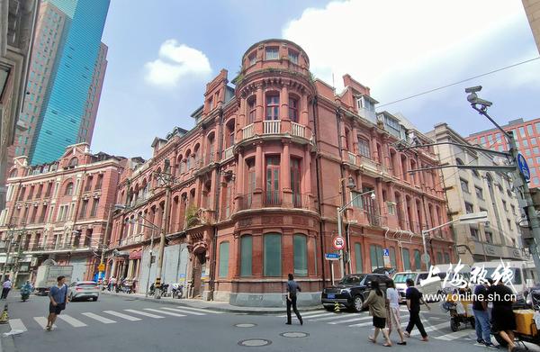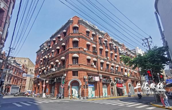 滇池路100号原为仁记洋行大楼,最初的仁记路也是因为这栋大楼而得名。该楼于1908年建成,与英商业广地产有限公司大楼一样,同为英国安妮女王时代建筑风格的砖木结构,清水红专立面。共三层,转角处为四层,砖拱及一、二层之间的楣梁上的装饰纹样,以及爱奥尼柱等砖雕花饰的做工都很细腻。从平面图上看该建筑为三角形结构,沿街转角处的塔楼为构图中心位置,也是因地制宜并充分利用空间所产生的结果。仁记洋行早在1950年就已经关门,之后底楼仍为商用,楼上则改为了民居。