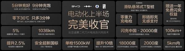 2025年全年,比亚迪累计销量突破460万辆,斩获中国汽车市场车企销量冠军;海外销量突破104万辆,出海足迹覆盖全球119个国家和地区,在多国新能源汽车市场位居销量榜首。比亚迪长期坚守“技术为王”理念,2025年全年研发投入达634亿元,累计研发投入突破2400亿元。2026年3月,比亚迪发布第二代刀片电池及闪充技术,一举攻克了电动化上半场“充电慢”和“低温充电难”的世界性难题,电动化上半场至此完美收官。同时,比亚迪发布“闪充中国”战略,年底将在全国建设20000座闪充站,让用户充电更自由、更便捷,引领电动车进入闪充时代。
