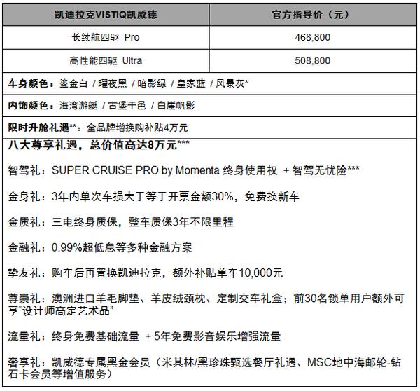 凯威德不止是一台豪华纯电车,更是凯迪拉克在这个时代,对豪华、对风范的一次全新表达。即日起,用户可前往全国授权经销商处,或通过凯迪拉克官方App、小程序下订凯威德,与凯迪拉克携手再赴巅峰,开启人生新征途。
