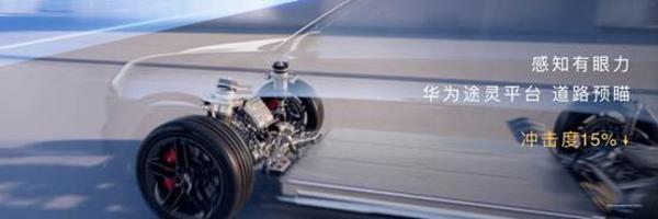 全系标配华为途灵平台,前双叉臂、后五连杆独立悬架,搭配闭式空气悬架与连续可变阻尼减震器,行驶更舒适。前四活塞固定式刹车卡钳[21],百零刹停距离仅33.8m[22]。道路预瞄,冲击感降低15%[23];HUAWEI DATS 3.0使打滑风险降低60%[24]。御水缓行模式应急涉水深度700mm。搭载猫头鹰极致转向,最小转弯半径5.5m。