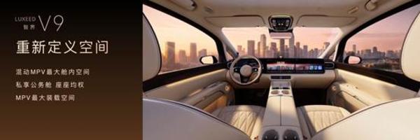 全景智慧旗舰MPV智界V9正式开启预售,预售价39.98~52.98万元,即刻下订可享5000元意向金抵10000元购车权益[30],鸿蒙智行车主增购/换购智界V9,享尾款减免2万元权益[31]。作为鸿蒙智行首款旗舰MPV,智界V9将从空间、场景、健康、舒适、驾驭、安全等多个维度重新定义MPV,全系标配13个安全气囊、±7度后轮转向等旗舰配置,将安全科技带入MPV,刷新用户对高端出行的想象,堪称“MPV中的MVP”。
