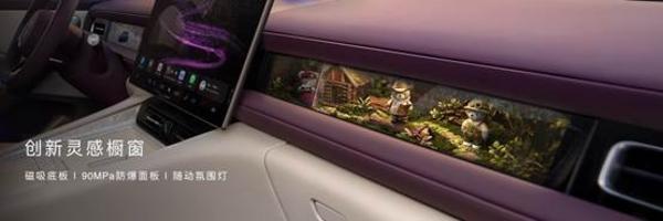 创新灵感橱窗采用磁吸设计,拥有随动氛围灯,支持陈列官方磁吸公仔、迷你模型等。配合车机壁纸随心更换,“你的座舱你做主”。灵感橱窗经过安全验证,外部防爆钢化玻璃面板强度90MPa,碰撞后依旧保持完整。灵感橱窗支持更换墨彩相册、律动香氛等多种配件[6],呈现“百变副驾”。