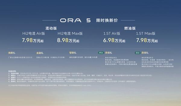 【上海热线汽车频道讯】4月25日,长城欧拉在第十九届北京国际汽车展览会举办以“求实”为主题的品牌发布会。长城欧拉5混动版和长城欧拉5燃油版正式上市。其中,欧拉5混动版建议零售价8.98万元起,欧拉5燃油版建议零售价7.98万元起。现在下订更可享包含换新礼、金融礼、智联礼、质保礼在内的四重好礼,叠加上市权益后,欧拉5混动版限时换新价7.98万元起,欧拉5燃油版限时换新价6.98万元起。