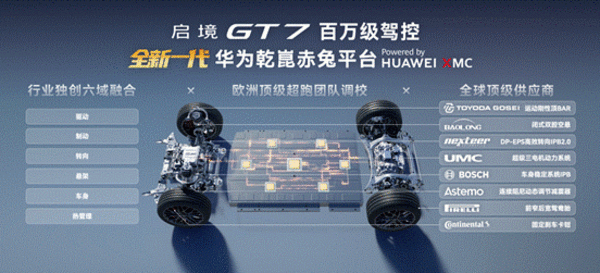 启境GT7将新一代华为乾崑赤兔平台、顶级硬件及国际大师调校三大优势进行原生融合,将智能科技注入驾控灵魂,成就启境GT7的百万级驾控体验。