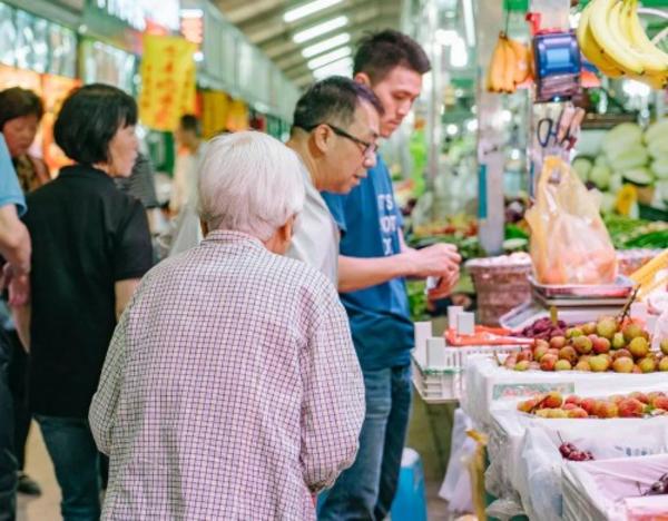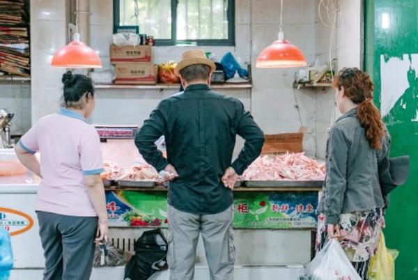 北面为农贸市场,瓜果蔬菜、鸡鸭鱼肉、各种熟食,供应着附近居民的一日三餐。