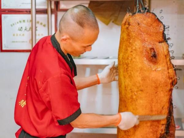 猪肉都是当天宰杀的土香猪,现烤现卖,还要给猪肉做一个打磨,吃起来皮脆柔嫩,味道确实不错!