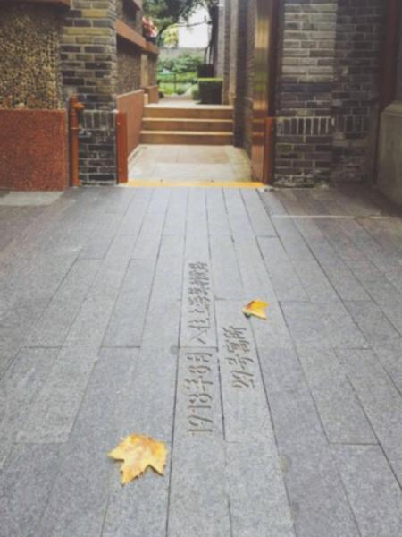 雨滴倾落在地面上的凹深字体中,如同岁月淘洗过的真纯,也似时光雕琢后的浪漫。等到暑气蒸腾时再来走一走,这里会投射出层层光晕,恰似那份革命的赤诚。