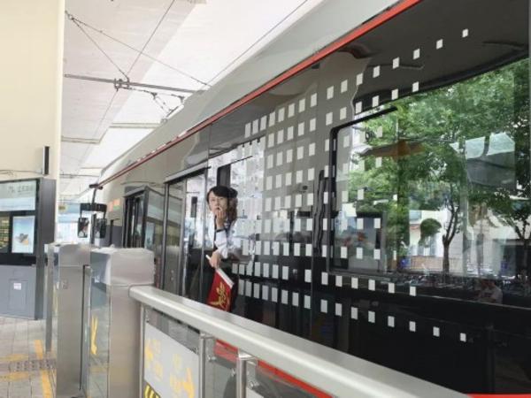 现在的中运量71路延用了“老上海”公交车售票员的怀旧小技能——手持“慢”字旗,让乘客在感受新式巴士的速度和服务的同时,也体验了一把老上海的情怀。