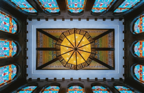 荣宅内部,老上海滩“大户人家”的富丽堂皇袭面而来,欧式古典主义的设计图案被大量运用在屋内各处,雕花装饰,欧式复古彩色玻璃,中式实木雕刻,处处散发着老上海富豪世家的高雅。