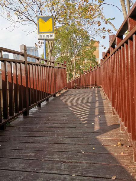 有趣,是指苏州河边的健身步道,位于高高的防汛墙与绿化带之间。