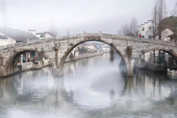撑一把油纸伞,漫步在松江泗泾古镇的街头,两边是青砖黛瓦的老宅子,脚下有踏着石板路发出的嗒嗒响声;坐在临河的窗前,看轻舟来往,前方横陈的拱桥上,行色匆匆的路人正在往家里赶。