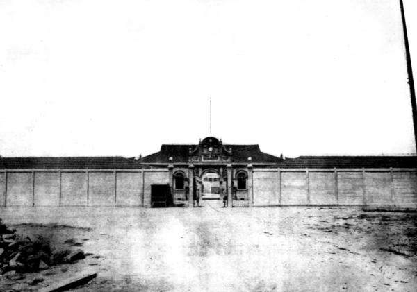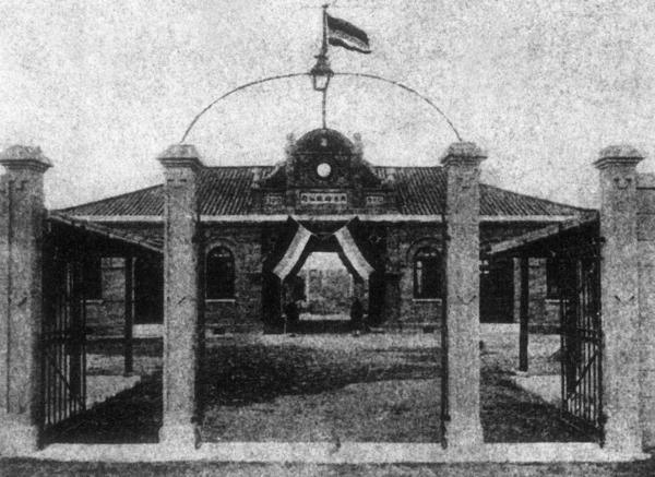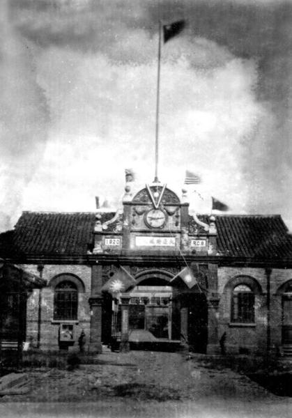 1922年,开业后的大通纱厂内大门。1922年4月,大通纱厂建成投产,拥有10800枚纱锭,年产量逾万件,产品牌名“飞艇”,商标“梭子”。