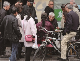 也许是因为以前居住空间狭小,上海人习惯搬一把椅子坐到弄堂口、马路边,一边孵太阳,一边“茄山河”(聊天)。