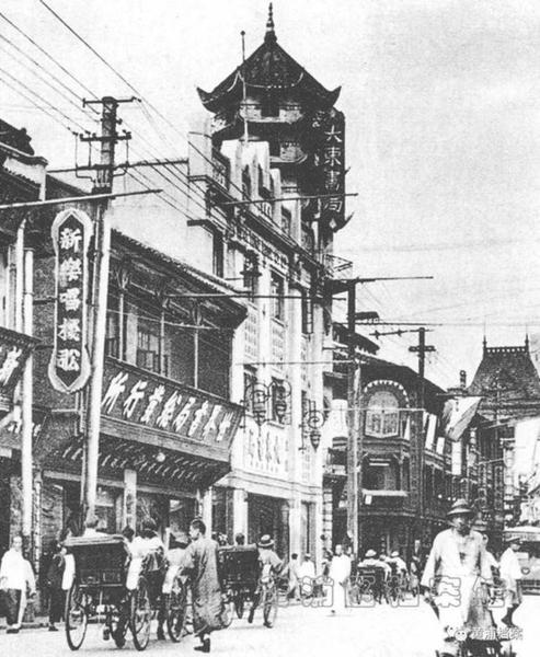 20世纪30年代的福州路,时报馆的塔楼挂上了大东书局招牌