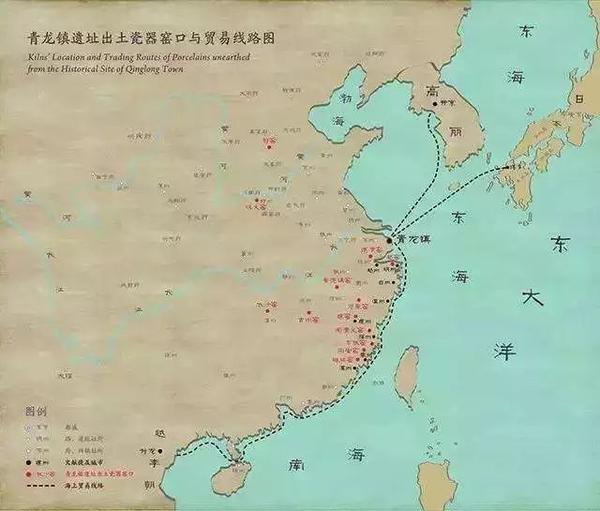 青龙镇遗址出土瓷器窑口与贸易线路图