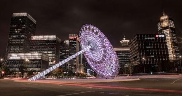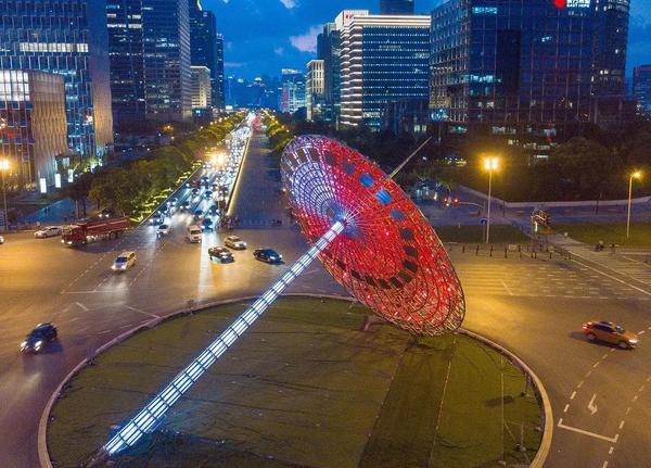 浦东新区世纪大道景观(灯光)工程以古代利用日影测得时刻的“日晷”中提取“时间”概念,打造“时光世纪 鎏影东方”主题,运用灯光的表现手法将古代、现在及未来发展的时间轴相交融。
