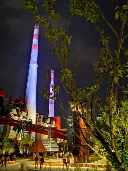 “水厂片区”灯光以突出水厂的历史感为主,用暖白光还原建筑的历史特色,将水厂的建造年份“1883”高光突出,唤起大家对水厂历史的兴趣,并在出水口处设置了特色灯光小品“水立方”,实时播报水质情况,增加趣味互动,打造区域亮点。