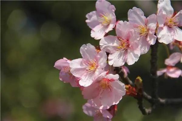 为我国原生樱花种。树皮灰白色;小枝紫褐色;萼筒壶形钟状,萼片长圆形,少有反折;花瓣粉红色,长椭圆形,先端二裂;花朵小巧细密,精致可爱。