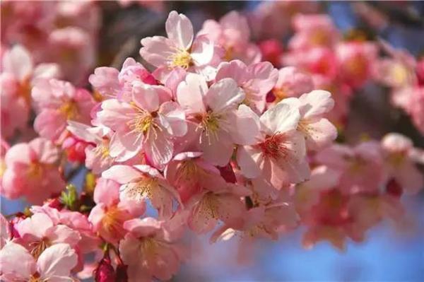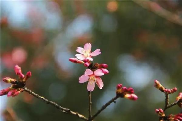 又称‘初美人’樱,是樱桃与钟花樱的杂交种,具有樱桃花香味。花瓣5枚,桃红色,先叶开放,略有波皱向内卷;花朵密集。