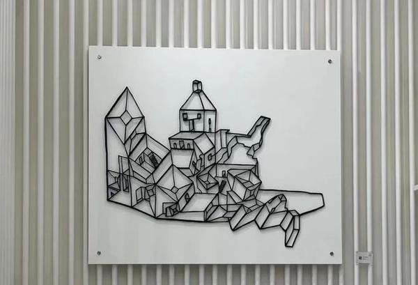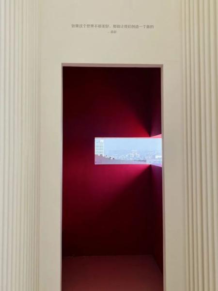 当参观者来到二楼,透过玻璃再次俯瞰这幅艺术作品时,又会惊喜地发现透明的玻璃上印着的话正好是那幅艺术品的作者所说。
