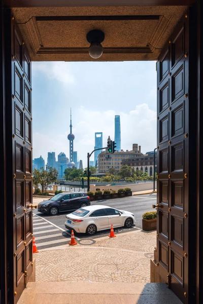 进入博物馆,反身回望,充满历史感的大门框住了具有未来感的陆家嘴风光,宛若穿越时光。上海邮政博物馆的大门因此在网上获得了“上海之门”“封神机位”“出片天花板”等雅号。