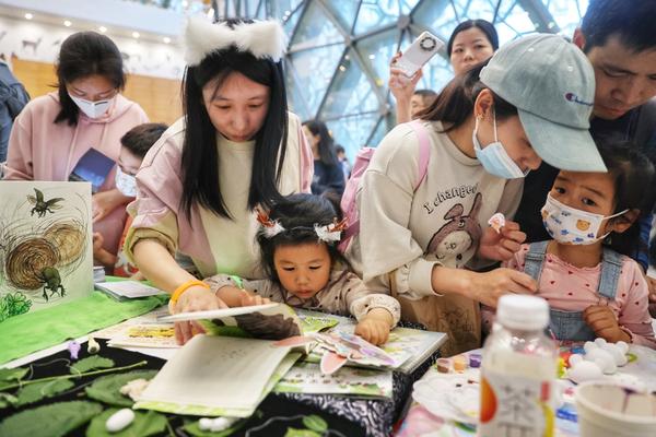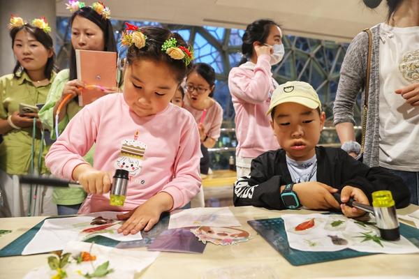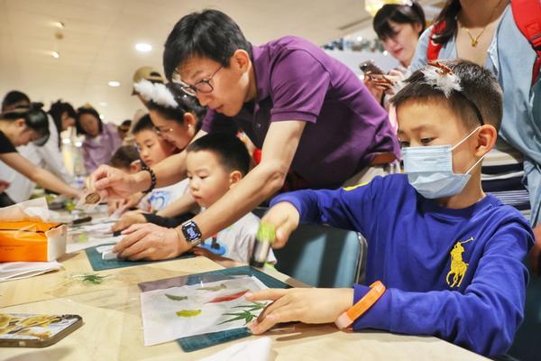 家长陪小朋友动手制作自然绘本。