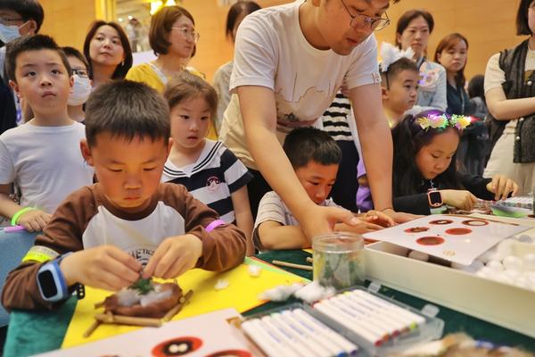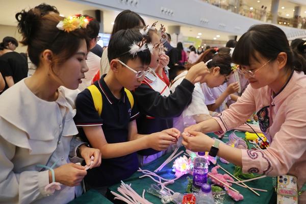 小朋友们在集市制作鸟巢。